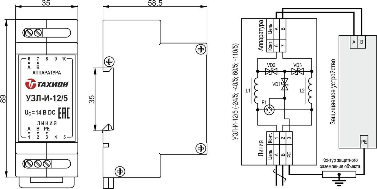 Устройство защиты интерфейсов УЗЛ-И-110/5 20137 Устройство защиты интерфейсов УЗЛ-И-110/5 20137 Устройство защиты интерфейсов с подачей питания УЗЛ-И-110/5 предназначено для защиты от импульсных перенапряжений (грозовых, электростатических разрядов и др.) оборудования промышленной автоматизации, диспетчеризации, систем безопасности, использующих 2х проводные линии интерфейса RS-485, RS-422, M-bus, CAN и их разновидностей, в пределах 2 ÷ 3 зон молниезащиты (в соответствии с МЭК 61312-1).